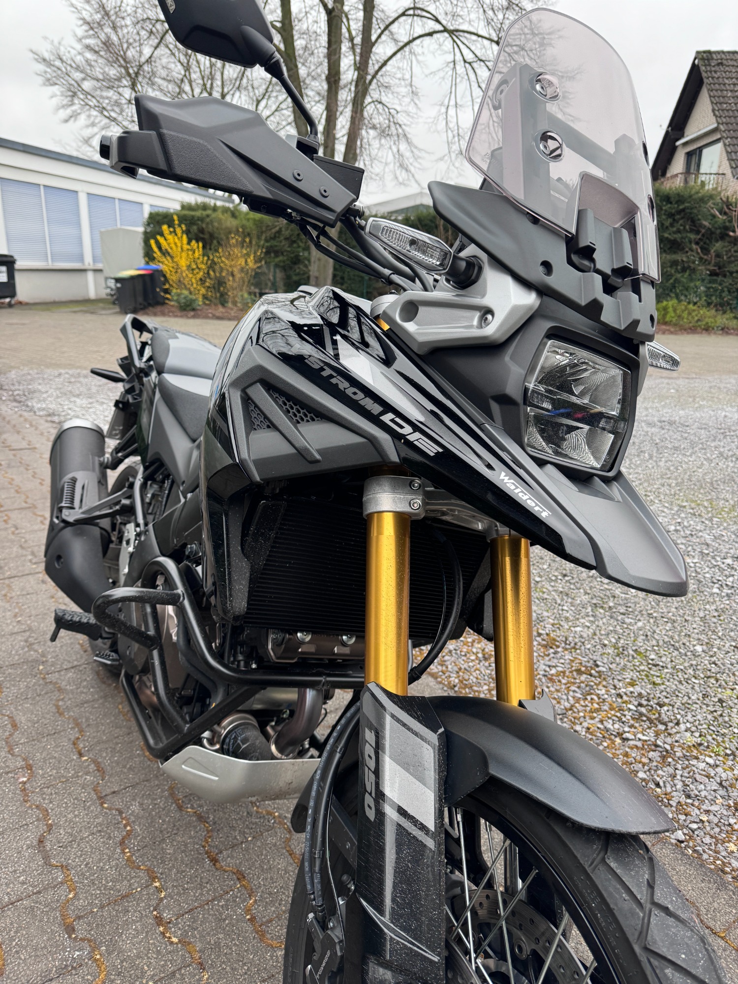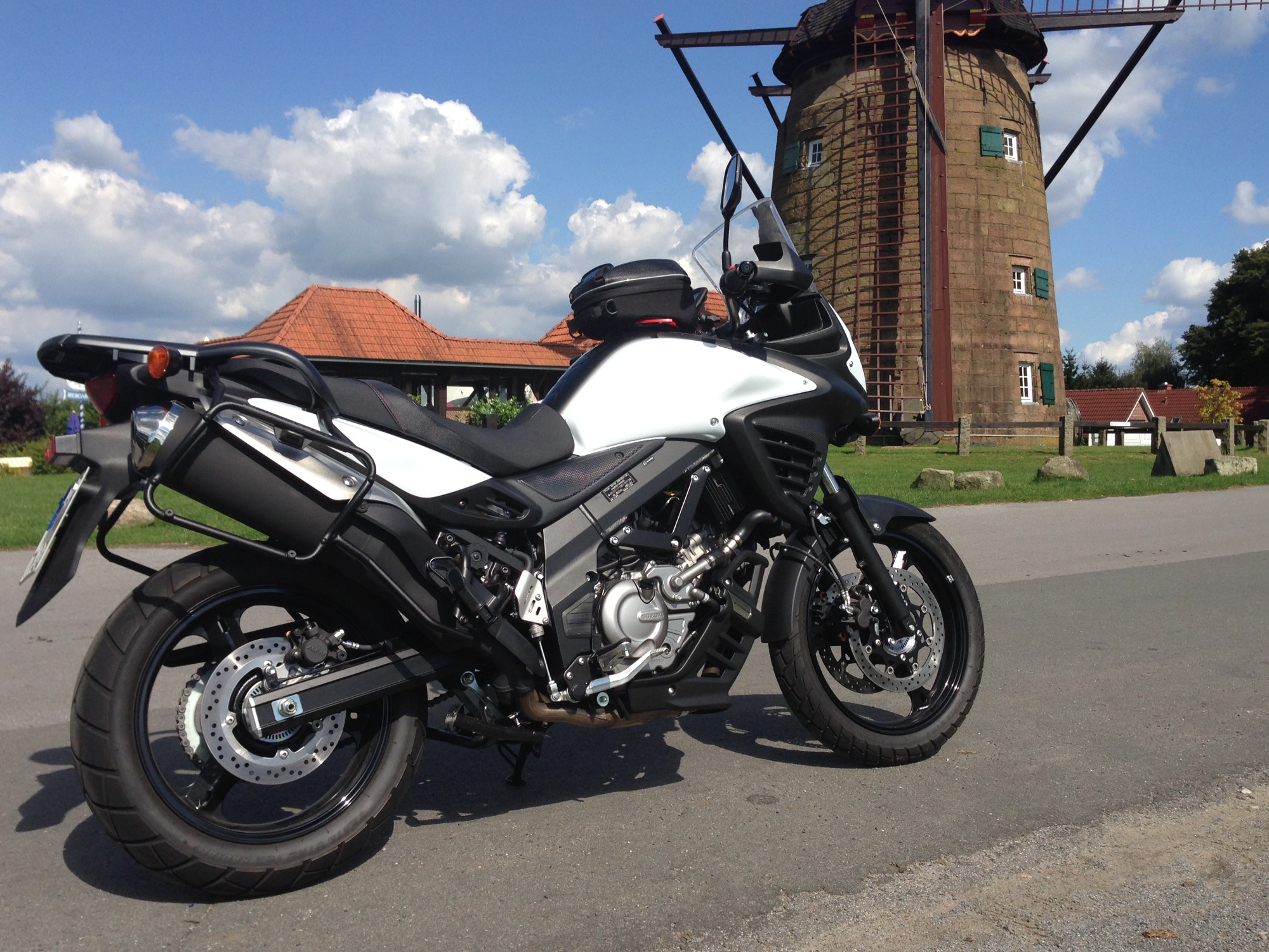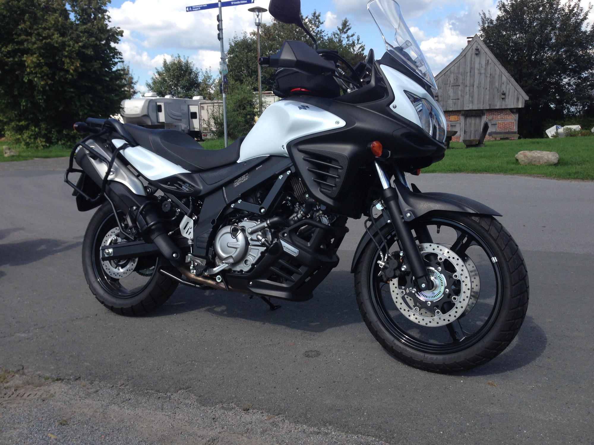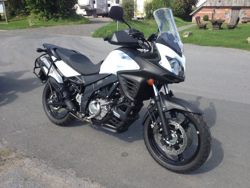 Als ich sie dann zum ersten Mal vor mir sah, stand sie da wie ein Versprechen: meine Suzuki DL650 V-Strom, strahlend weiß, makellos und bereit für alles, was vor mir liegt. Der Lack glänzte im Licht, jede Linie wirkte durchdacht, robust und gleichzeitig elegant. Es war nicht einfach nur ein Motorrad – es war mein Motorrad.