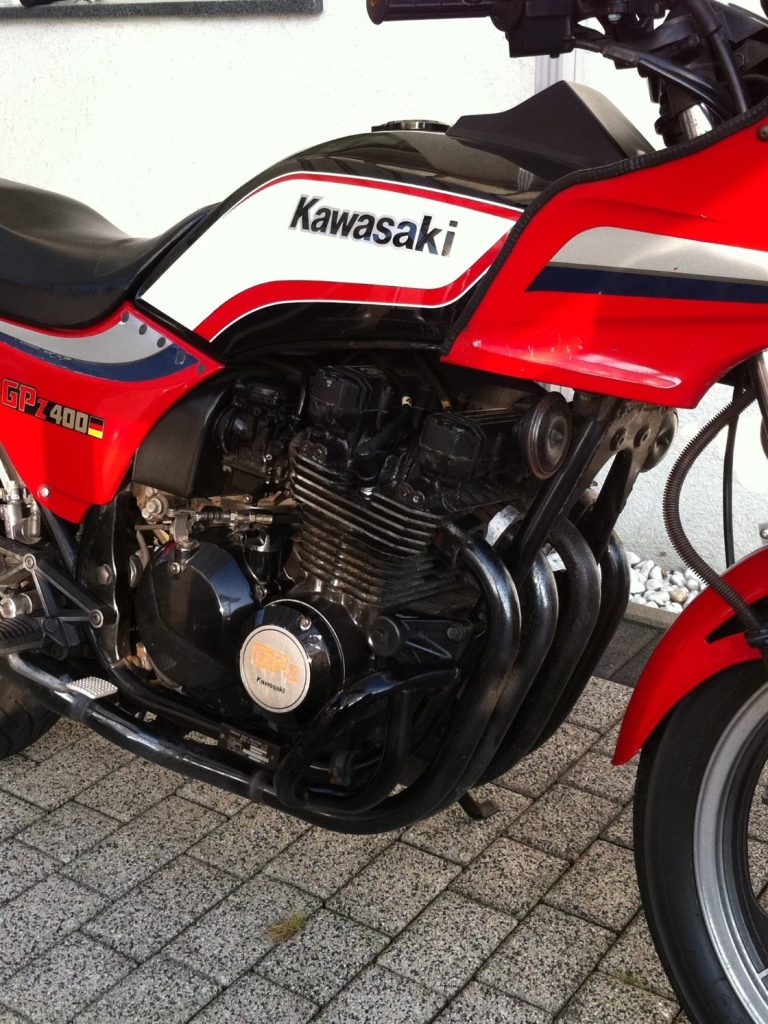 Auch optisch bekam die GPz400 neues Leben eingehaucht. Der Lack wurde aufbereitet, verrostete Teile ersetzt oder aufgearbeitet (damals gab es noch reichlich Neuteile zu kaufen) und Stück für Stück wurde aus dem Scheunenfund wieder ein echtes Schmuckstück.