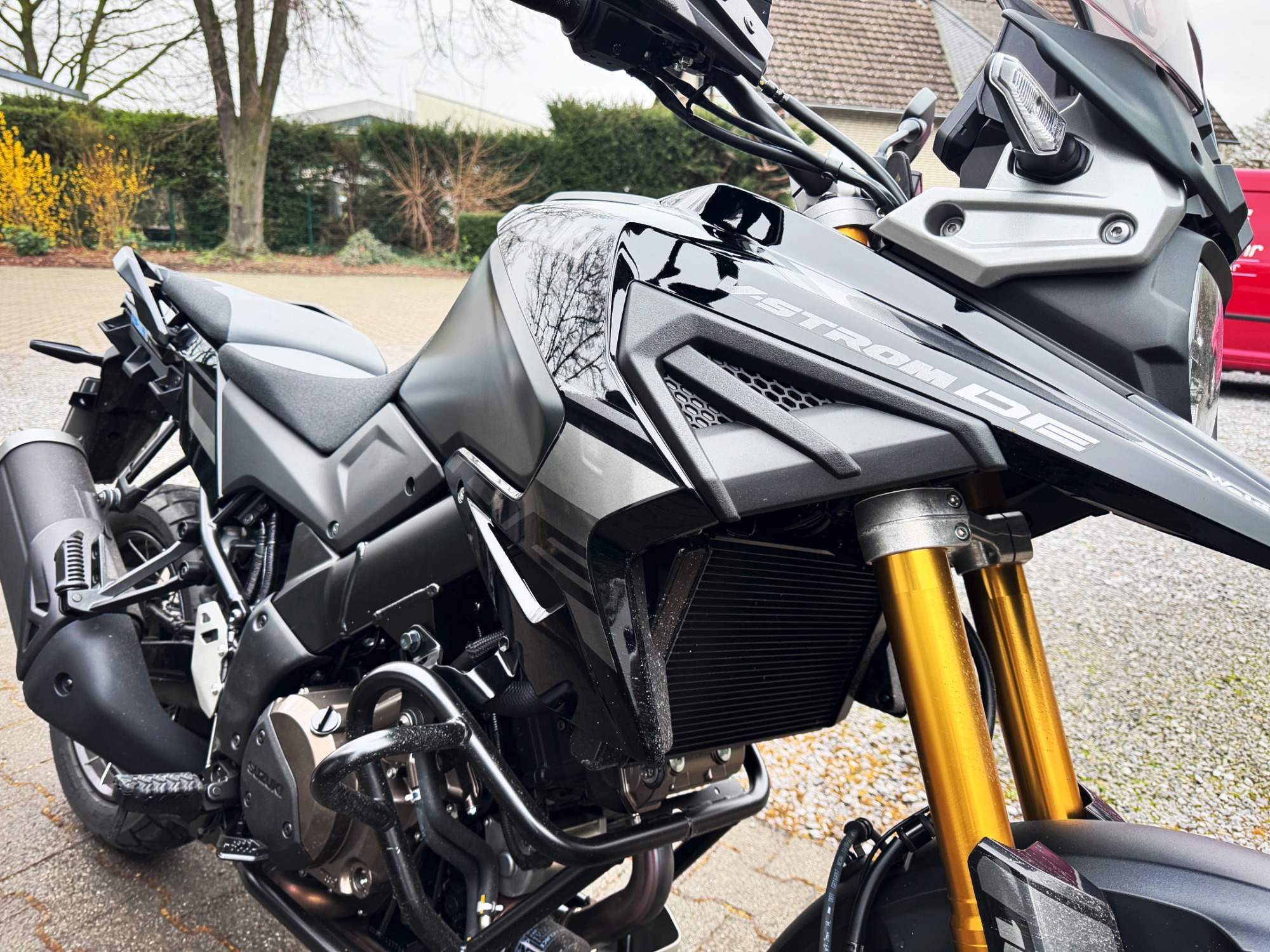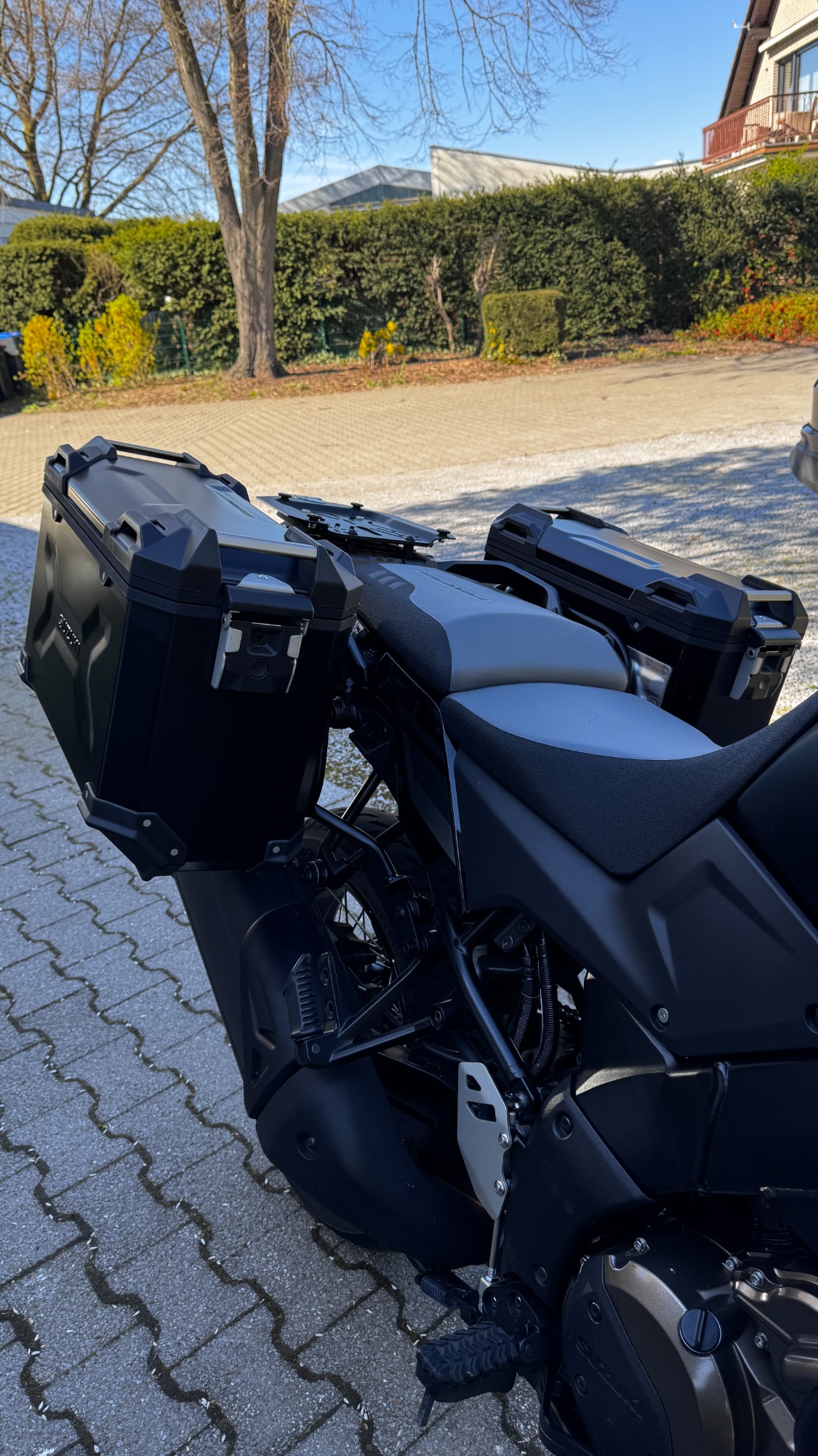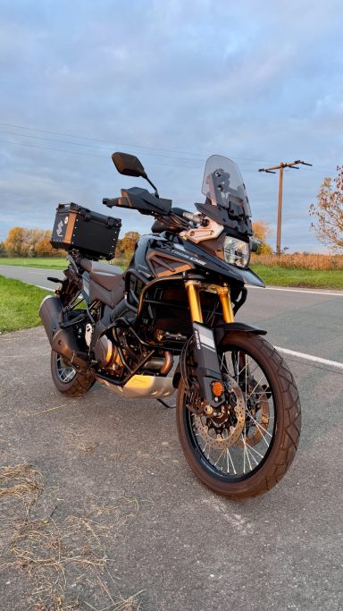 Mein aktuelles Motorrad ist mehr als nur ein Upgrade – es ist ein echtes Statement. Die Suzuki V-Strom 1050DE, tiefschwarz und ausgestattet mit einem perfekt passenden Kofferset, steht für genau das, was ich mir sehr gewünscht habe: Leistung, Komfort und Abenteuer in einem.
