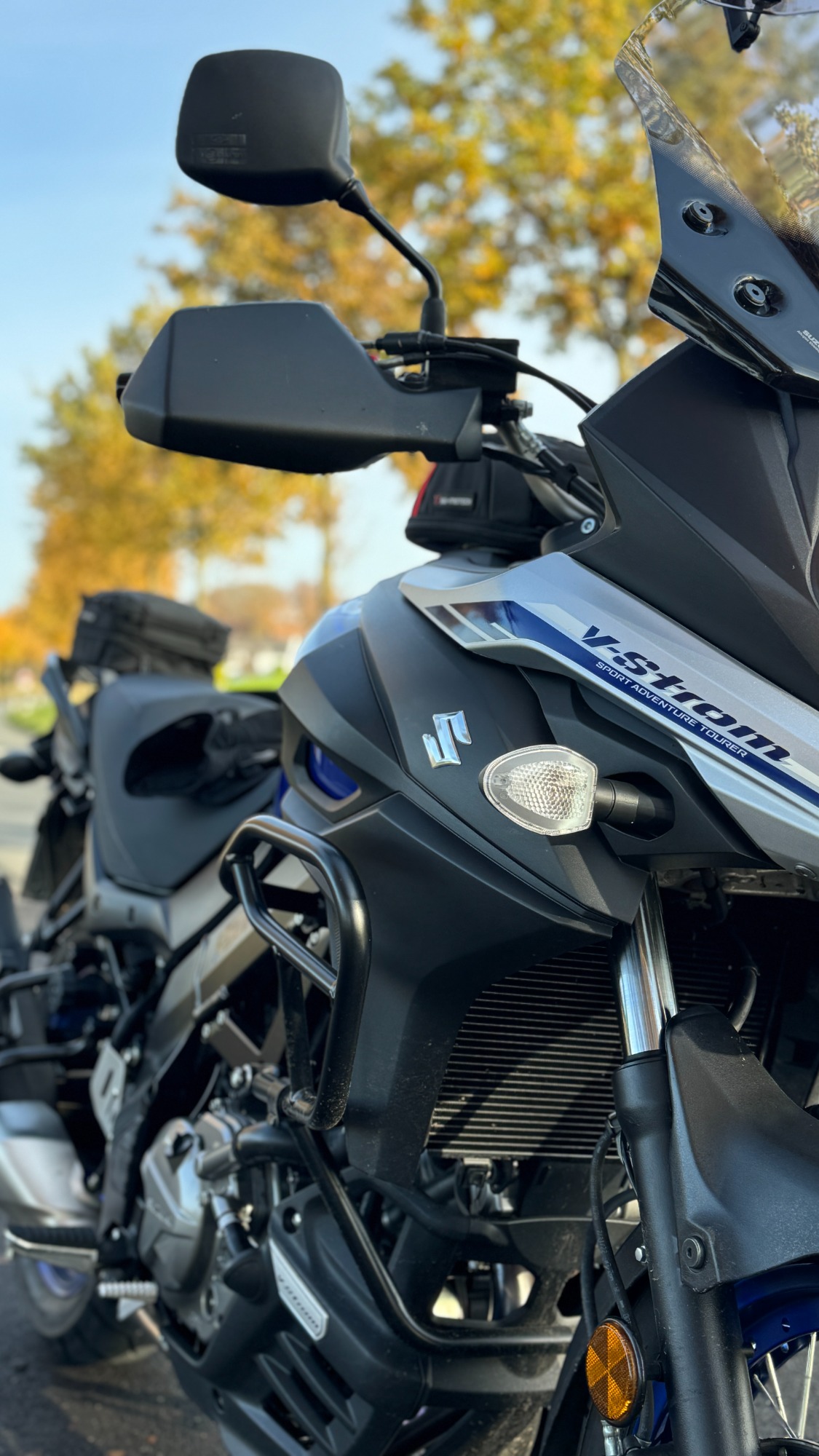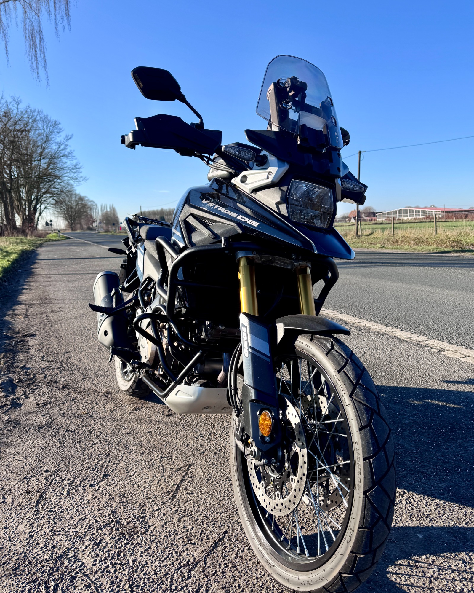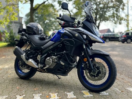 Und dann stand sie da: meine V-Strom 650XT, in einem kräftigen Blau, das je nach Licht fast schon lebendig wirkte. Die Speichenräder, der markante Schnabel und die robuste Bauweise gaben ihr genau den Abenteuer-Charakter, den ich gesucht habe. Sie sah aus, als wäre sie bereit für alles – lange Touren, spontane Abstecher und vielleicht auch den ein oder anderen unbefestigten Weg. Eigentlich wollte ich erst einmal nur schauen! Und dann ging es ganz schnell; wie immer!